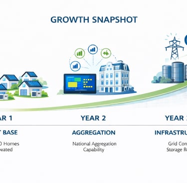 We aim to create a distributed energy network that supports national grid stability and long-term sustainable growth.